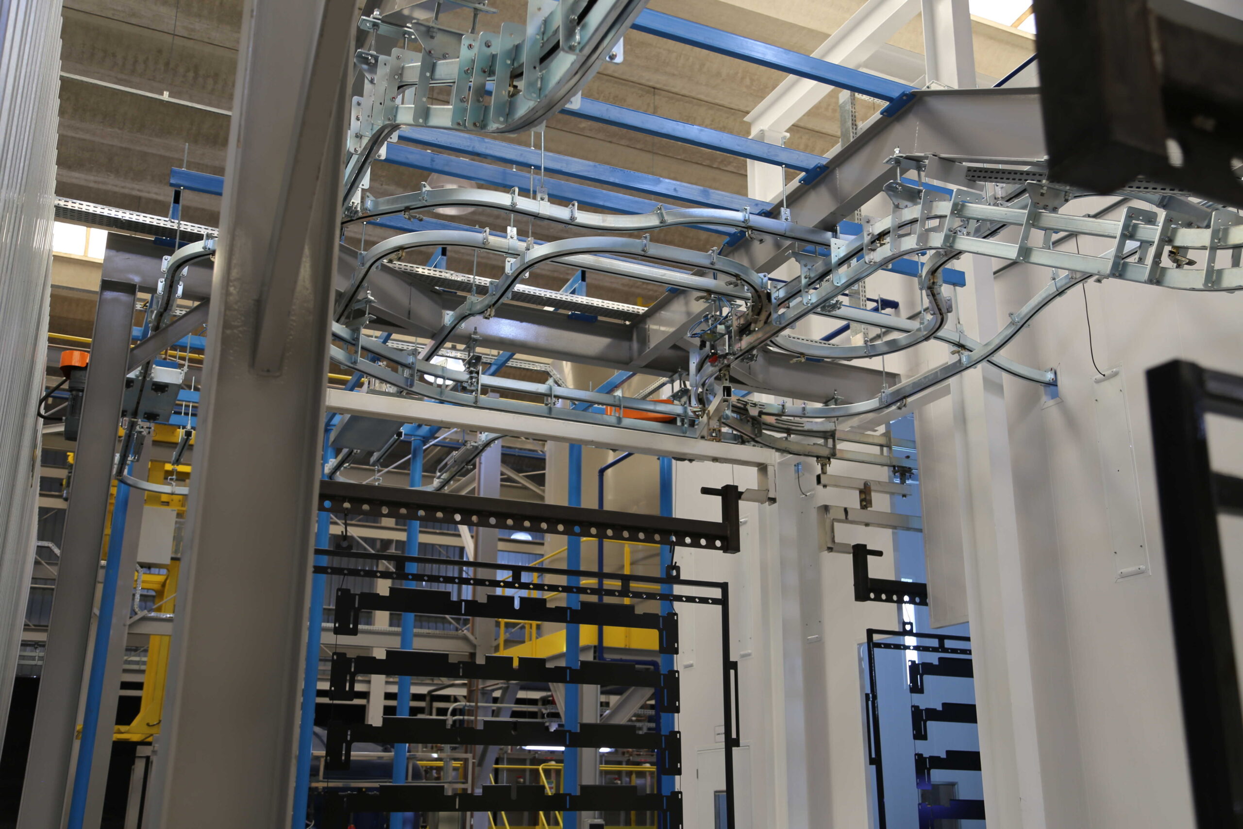 • Transportador Power & Free: permite uma logística flexível para as peças, em conexão com o sistema de movimentação da linha e-coat.
